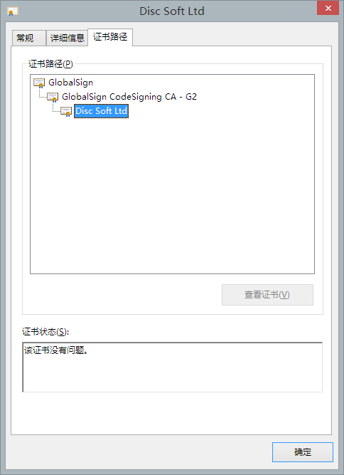 而这个Disc Soft Ltd公司的身份验证,则是由上面的根证书颁发机构来确认的。