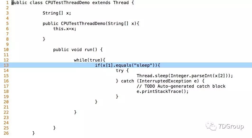 显然可以去查这个CPUTestThreadDemo.java的第13行了。