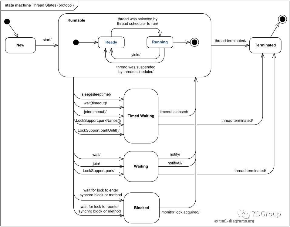 因为下面要说的是JAVA,所以来看一下JAVA的线程状态转换关系。