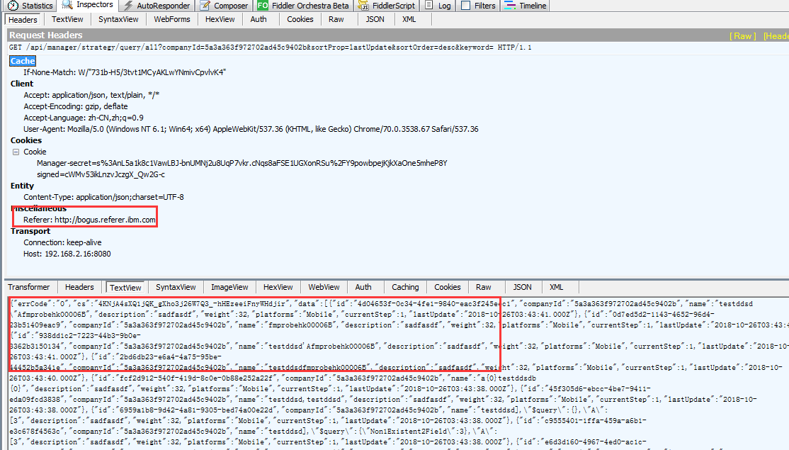 已将 HTTP 头设置为“http://bogus.referer.ibm.com”