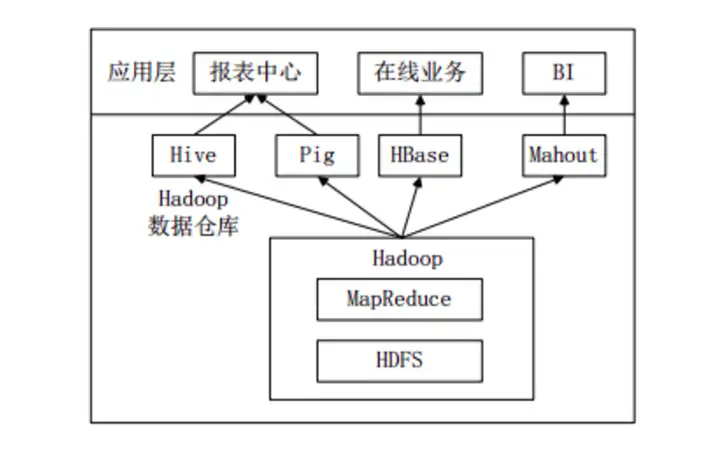 Hive和Pig用于报表中心,Hive用于分析报表,Pig用于报表中数据的转换工作。- HBase用于在线业务,HDFS不支持随机读写操作,而HBase正是为此开发,可较好地支持实时访问数据。