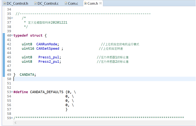 在com.c 文件中定义变量 并初始化