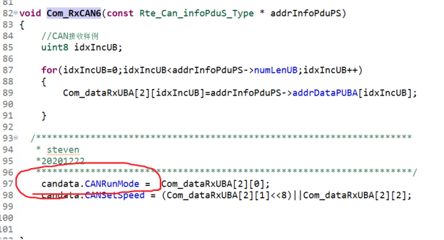 敲打完成程序 发现 candata.CANRunMode = Com_dataRxUBA[2][0];