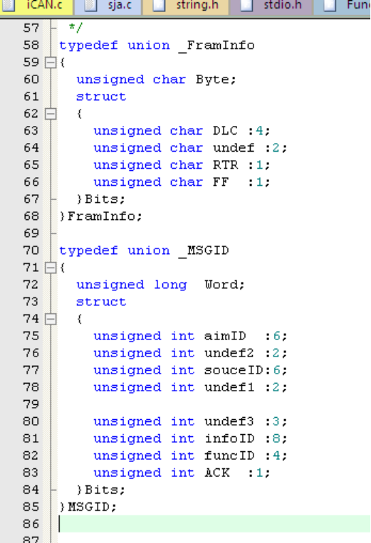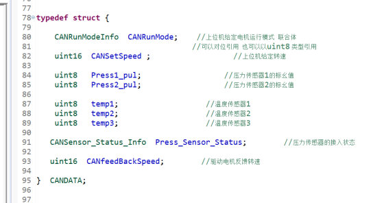 定义CANDATA 结构体数据类型