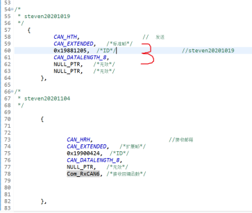 我定义了一个结构体 存放的是CAN 发送 和 接收的参数