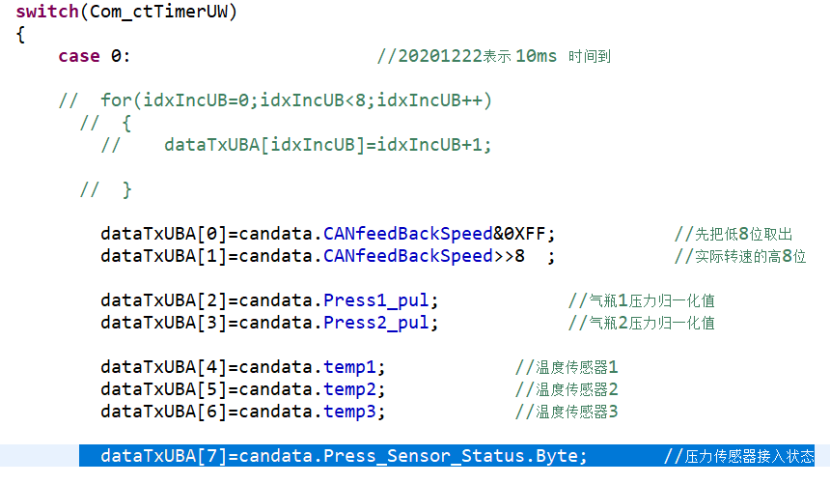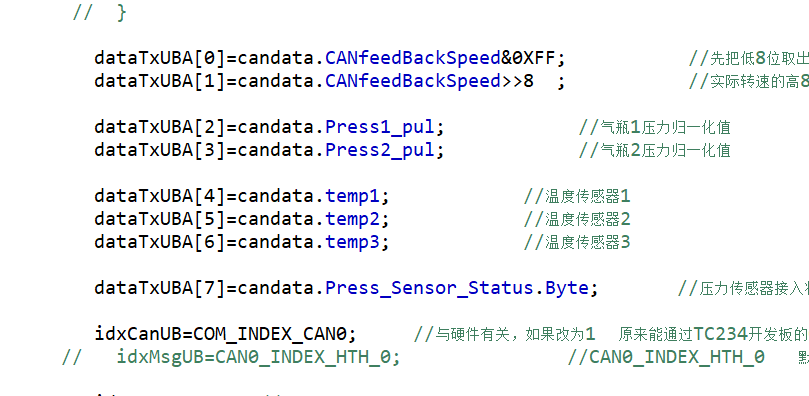 dataTxUBA[]=candata.Press_Sensor_Status.Byte; 就可以了