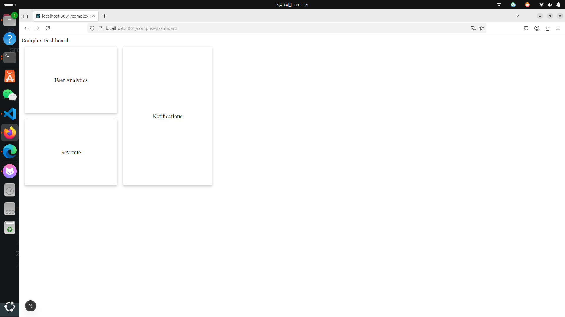 同样的你可以将@notifications,@revenue,@Users的反应组件中的di标签更换为Card并在顶部引入。这里我们做一个演示,一便你可以更好的理解我们目前的一些插槽的准备,这里我们以complex-dashboard为例