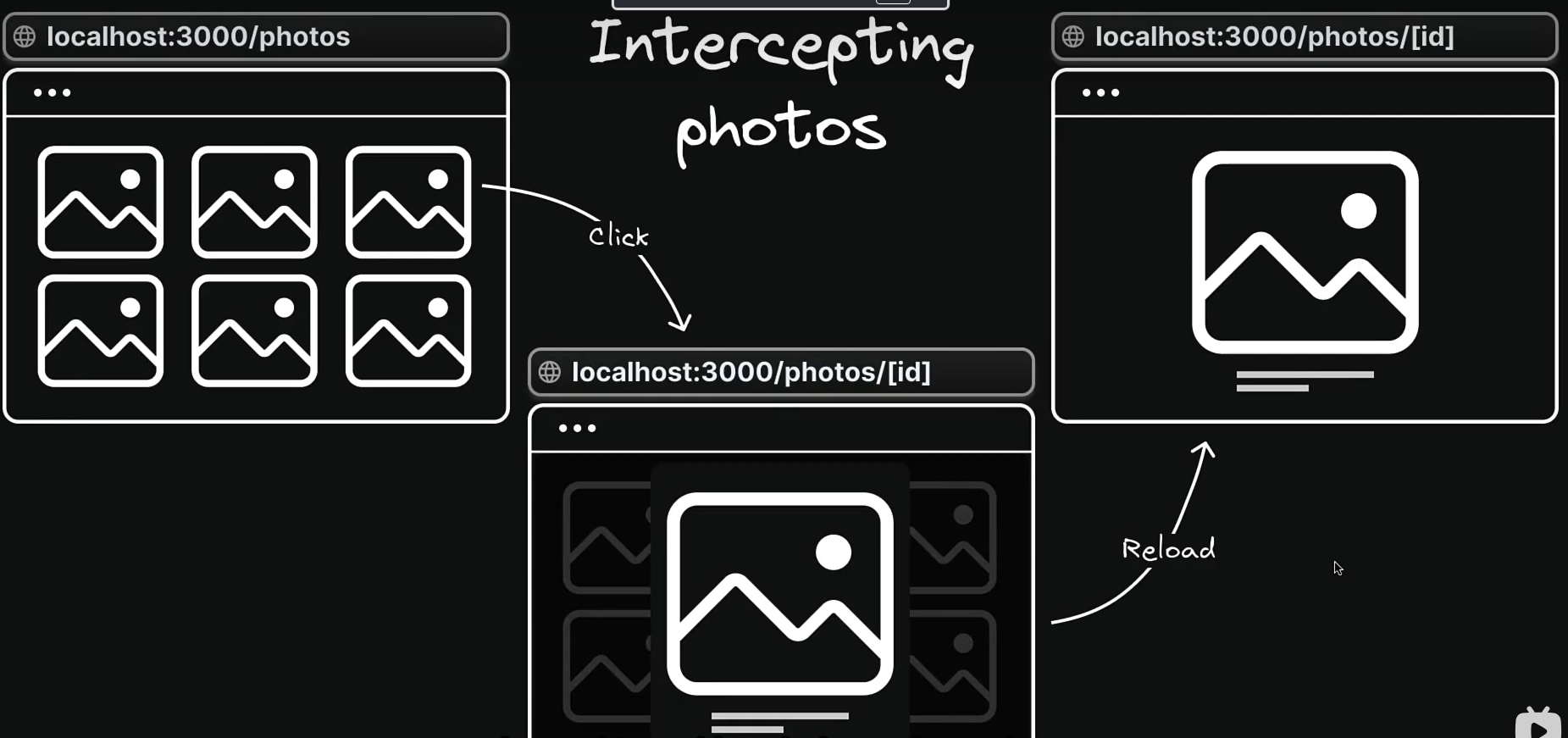 我们已经学习过路由的高级机制,拦截路由以及并行路由。今天我们演示一下如何让他们更好的团队合作,通过我们之前演示的图片,在一些照片中。当你点击一个照片的时候会被放大。并形成图层的概念。我们可以把底部的照片当作模板。