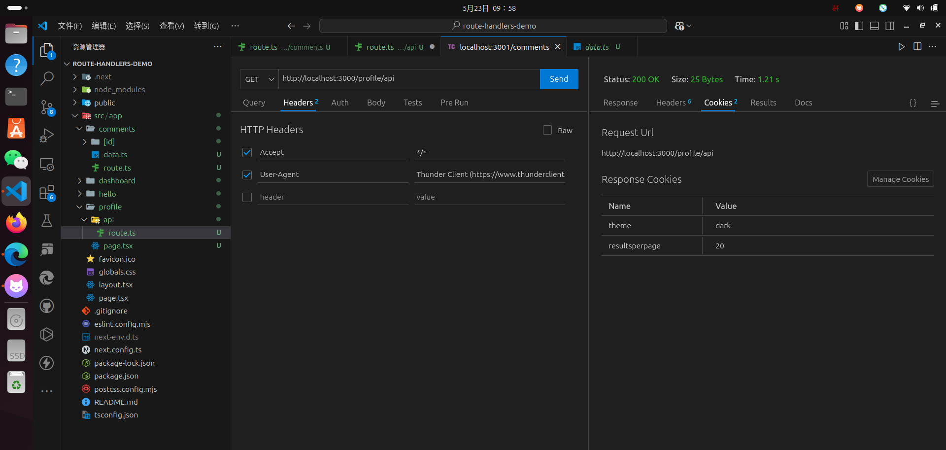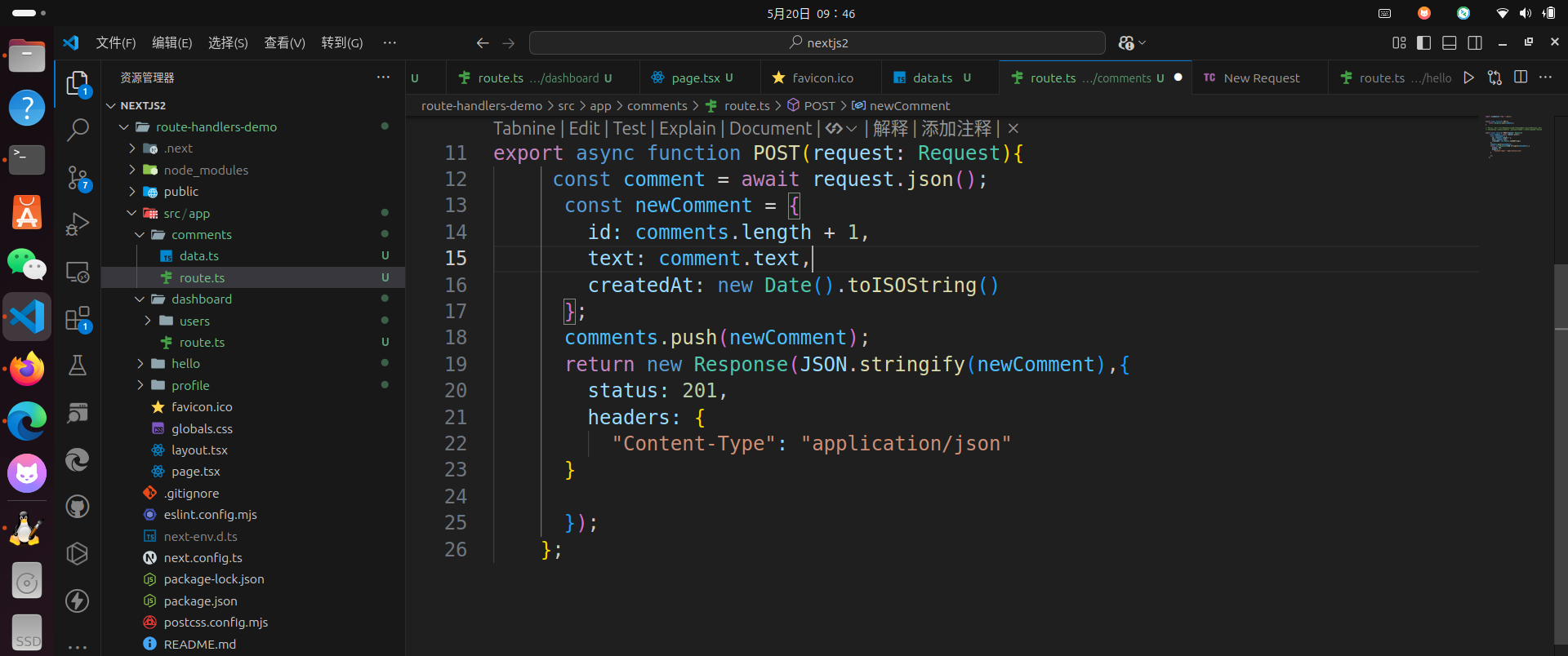 我们之前已经学过nextjs的文件系统,但实际上应用路由能够实现的功能更多,它允许你使用名为路由处理程序的功能为你的路由创建自定义请求处理程序,这与页面路由不同,它为我们提供了HTML内容路由处理程序,让我们可以构建RESTful端点,完全控制响应,就像构建一个节点加EXpress应用程序一样,你可以使用数据库执行所有的curd操作。路由处理程序正在发出外部API请求也是非常有用的,例如你正在构建一个a第三方能够通讯的应用程序,而同样的nextjs支持多种请求get,post,delete,这里我将向你展示。