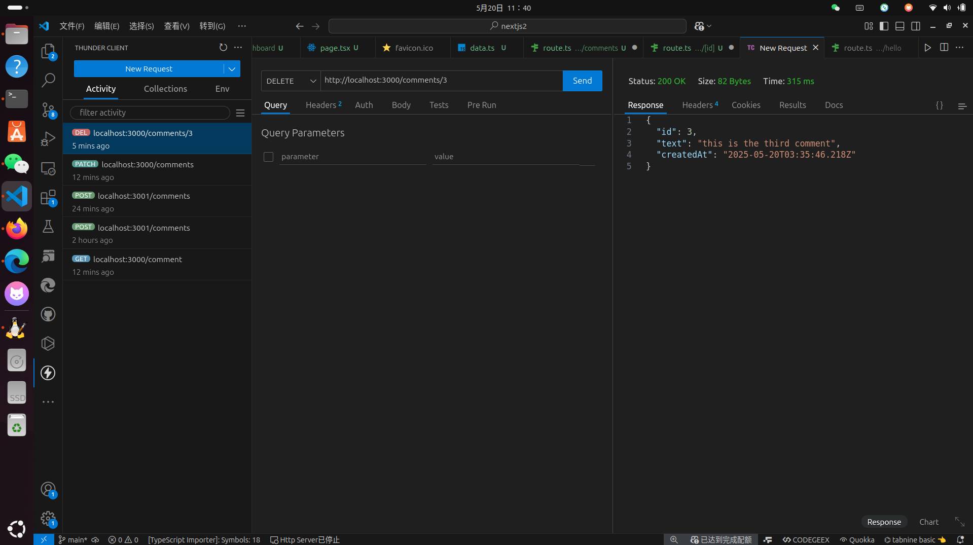 这也就意味着,每当我们重启项目的时候,修改之后的数据就会被清除。首先创建一些数据用来处理,这里我们需要创建一个名为comments的文件在app下,并在其下创建data.ts。这里我们用data来存放三条评论。来模仿我们观看视频时,底部的一个效果。