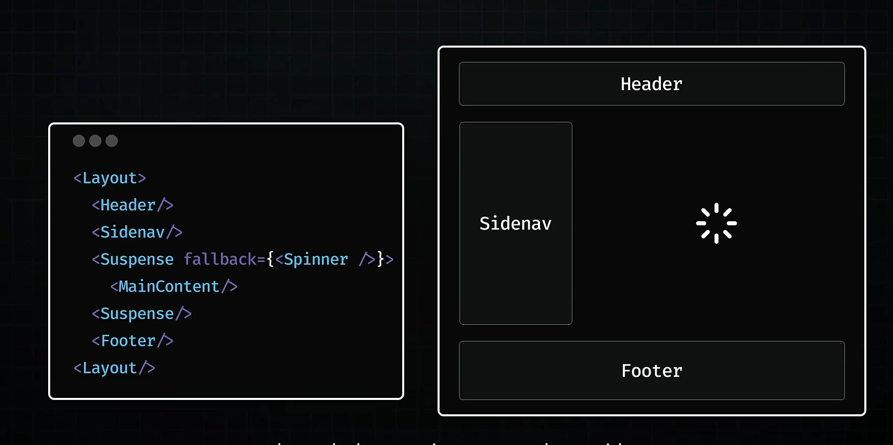 这里是我们最后一种服务器渲染策略,流式传输是一种允许从服务器进行渐进式的ui渲染策略。同样的这为用户的体验有了更好的提升,不会等待所有的页面渲染好再进行一个显示。同样的对于这种效果我们可以做一个简单的演化,以便你可以更好的理解页面渲染的效果。