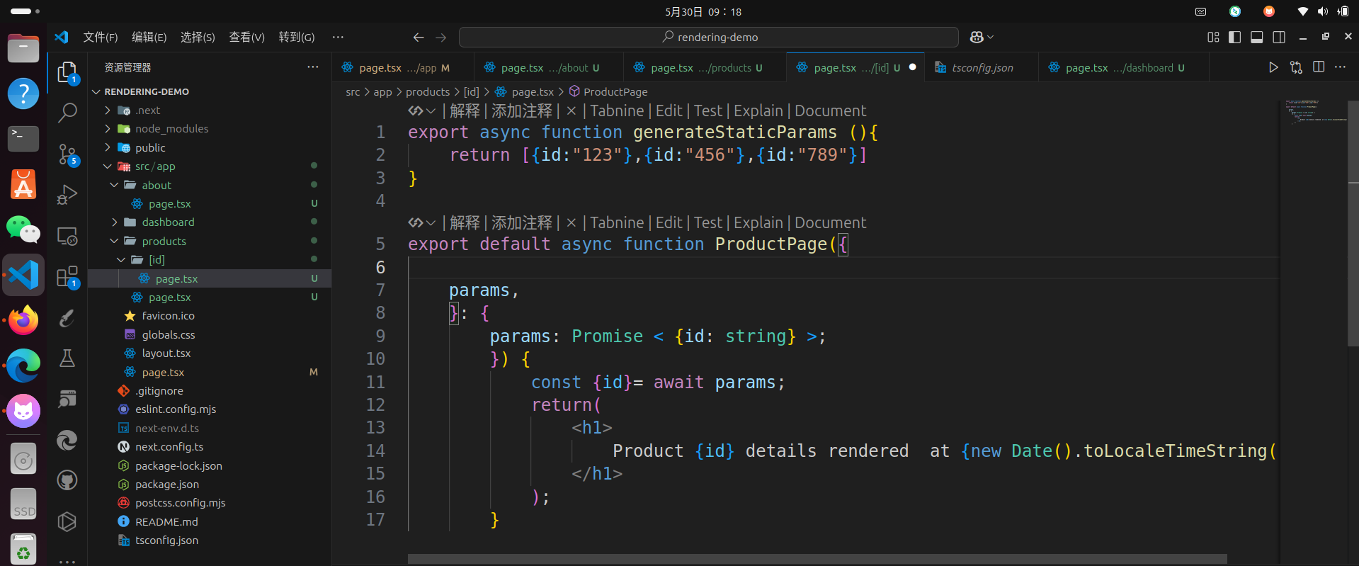 同样的在products/[id]/page.tsx,这里我们会让路由有一个动态的显示