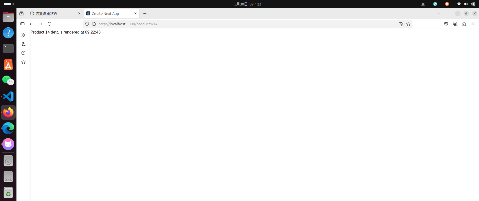 而对于动态的请求,当路由当中存在动态的数据,段,或者是API,nextjs就会开启动态的渲染来加载这个页面。这里编写一些代码会更容易理解。这里我们用一段代来进行测试,