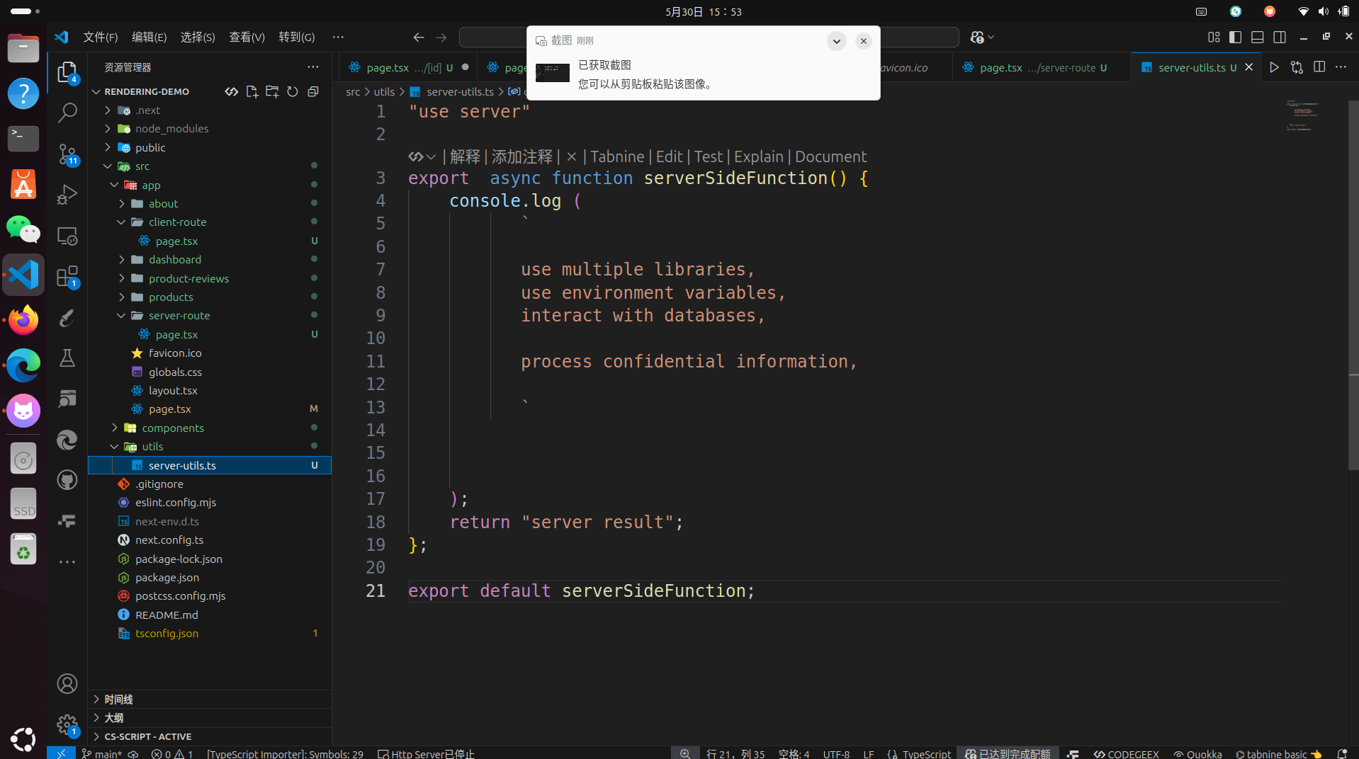 这里可以看到我们是在顶部进行一个引入组件,同样的在src下创建utils/server-utils.ts,在顶部我们选择是标志为服务器组件