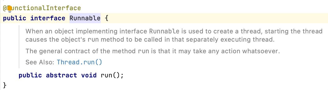 new Thread(new Runnable() { @Override public void run() { } }).start(); new Thread(() -> System.out.println("hello world")).start();