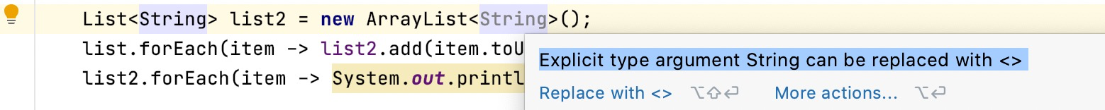 Explicit(显示) type argument String can be replaced with <>