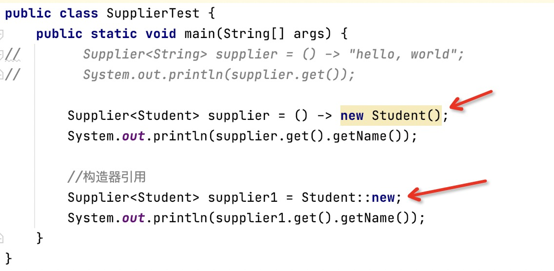 第一种采用的是lambda的方式,第二种则是方法引用(类名::构造方法)-》不输入参数,返回一个值