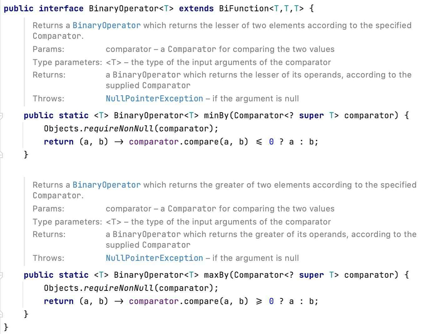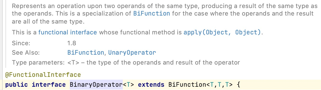 同时可以看到BinaryOperator继承了BiFunction,同时类型完全一致