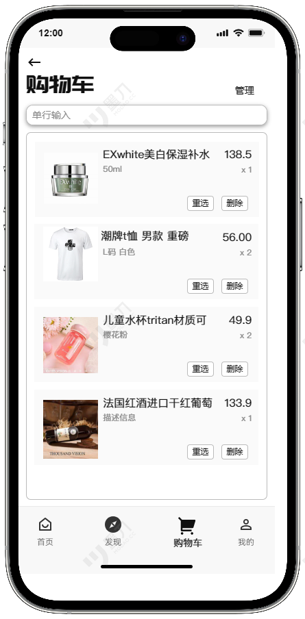 操作步骤:进入购物车界面后点击管理购物车进行购物车中物品删除