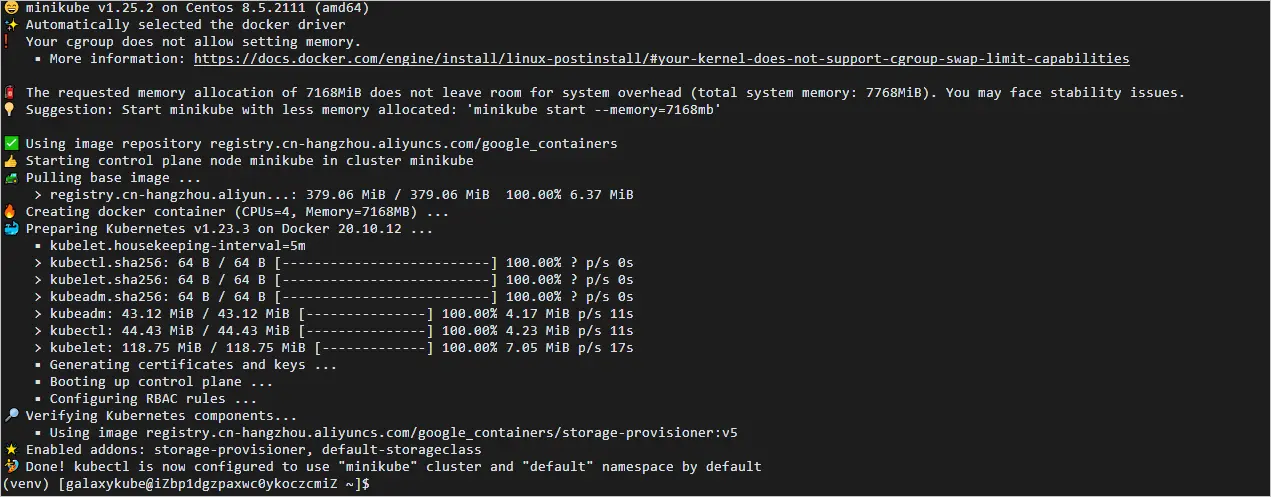 说明:这里我们使用了阿里云的minikube镜像源以及USTC提供的docker镜像源来加速镜像的拉取。