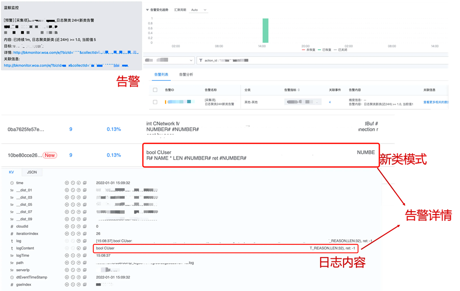 嘉为蓝鲸日志平台,分布式离线训练模型,在线实时模型应用,准确识别新模板及数量异常变化,第一时间掌握日志情况,让日志异常无处可逃。