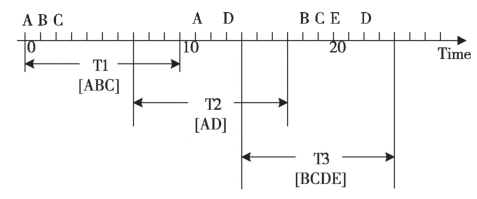 告警事件提取:告警事件,即每次故障事件所产生的一系列告警的集合,这是算法输入的必要形式,一般采取滑动时间窗的形式生成告警事件,滑动时间窗步长的取值可以根据告警的实际情况按告警事件的时间分布,取90分位数。告警事件的质量和数量与滑动窗口宽度和步长的设置息息相关,而告警事件作为算法的输入则对算法的效果起到重要的作用。如下图示例:ABCDE为告警数据,滑动窗口宽度为12,步长为7 ,通过3个滑动窗口分别得到了 3个告警事件[T1,T2,T3]。
