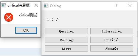 QMessageBox::critical(this,"cirtical消息框","cirtical测试");