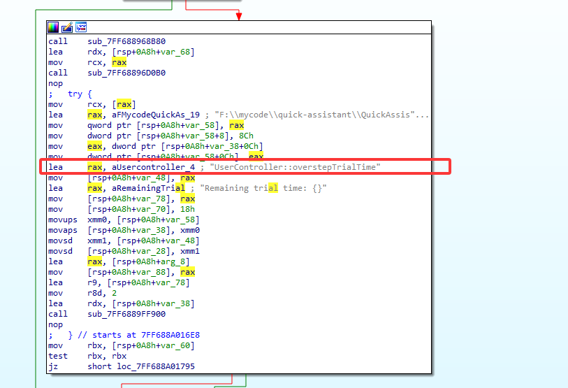 - 条件断点:overstepTrialTime() 返回值 / 试用时间字段