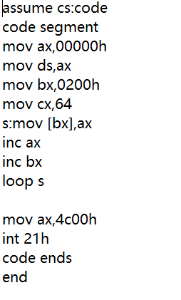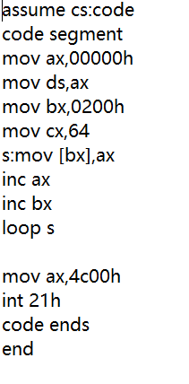 综合使用 loop,[bx],编写完整汇编源程序,实现向内存 0:200~0:23F 依次传送数据