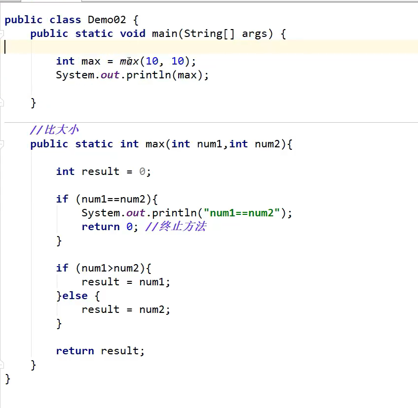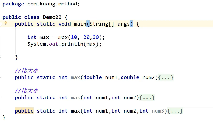 int larger =max(30,40) - 如果方法返回值是void,方法调用一定是一条语句