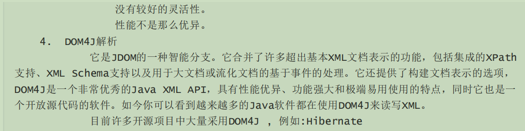 1 import org.dom4j.Document; 2 import org.dom4j.DocumentException; 3 import org.dom4j.Element; 4 import org.dom4j.Node; 5 import org.dom4j.io.SAXReader; 6 7 import java.io.FileInputStream; 8 import java.io.IOException; 9 import java.util.List; 10 11 public class Demo03 { 12 public static void main(String[] args) throws IOException, DocumentException { 13 //1.获取文件输入流 14 FileInputStream fis = new FileInputStream("D://book.xml"); 15 //2.创建xml文件读取对象 16 SAXReader reader = new SAXReader(); 17 //3 读取并得到文档对象 18 Document doc = reader.read(fis); 19 //4 通过文档对象+xpath,获取name节点 20 List<Node>list = doc.selectNodes("//name"); 21 for(int i = 0;i<list.size();i++){ 22 System.out.println(list.get(i).getName()); 23 System.out.println(list.get(i).getText()); 24 } 25 26 //查找一个 27 Node node = doc.selectSingleNode("//book[@id='1001']//name"); 28 System.out.println(node.getName()+" "+node.getText()); 29 30 fis.close(); 31 } 32 }