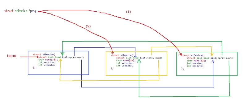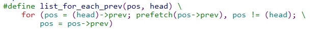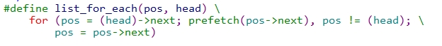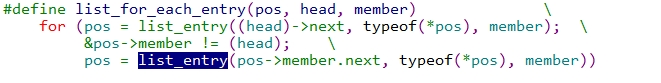 pos是临时使用的struct list_head指针变量,从链表head(head不一定是链表头)中遍历head后面的所有成员。