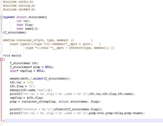 #define offsetof(TYPE, MEMBER) ((size_t) &((TYPE *)0)->MEMBER) //该宏的作用是获取结构体成员的相对偏移值