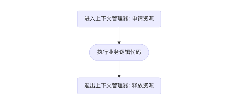 在进入上下文管理器时,先申请资源,然后执行业务逻辑代码,不管在执行代码时是否抛出异常,在退出上下文管理器时,都会执行释放资源的操作。
