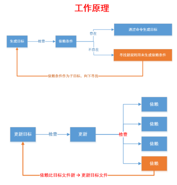 更新目标前会检查依赖是否比目标更新,如果更新则更新目标