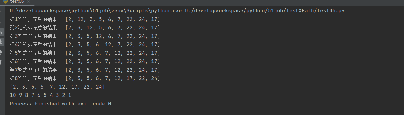 for j in range(i,0,-1): # 因为是从后往前进行比较,所以是从 当前的位置往前移动