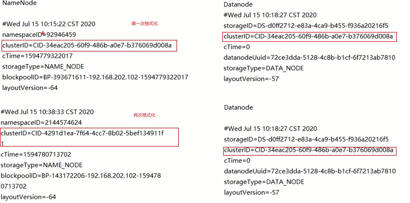 格式化后的clusterID不同