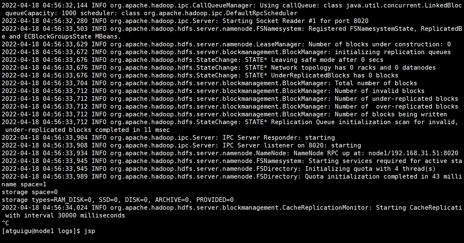 2022-04-18 04:53:08,496 INFO org.apache.hadoop.metrics2.impl.MetricsSystemImpl: NameNode metrics system started