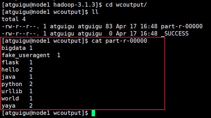 hadoop jar share/hadoop/mapreduce/hadoop-mapreduce-examples-3.1.3.jar wordcount wcinput wcoutput