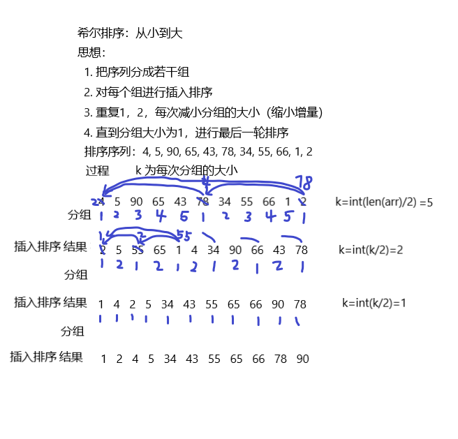 k = int(k / 2) # 每次减小分组的大小,缩小增量