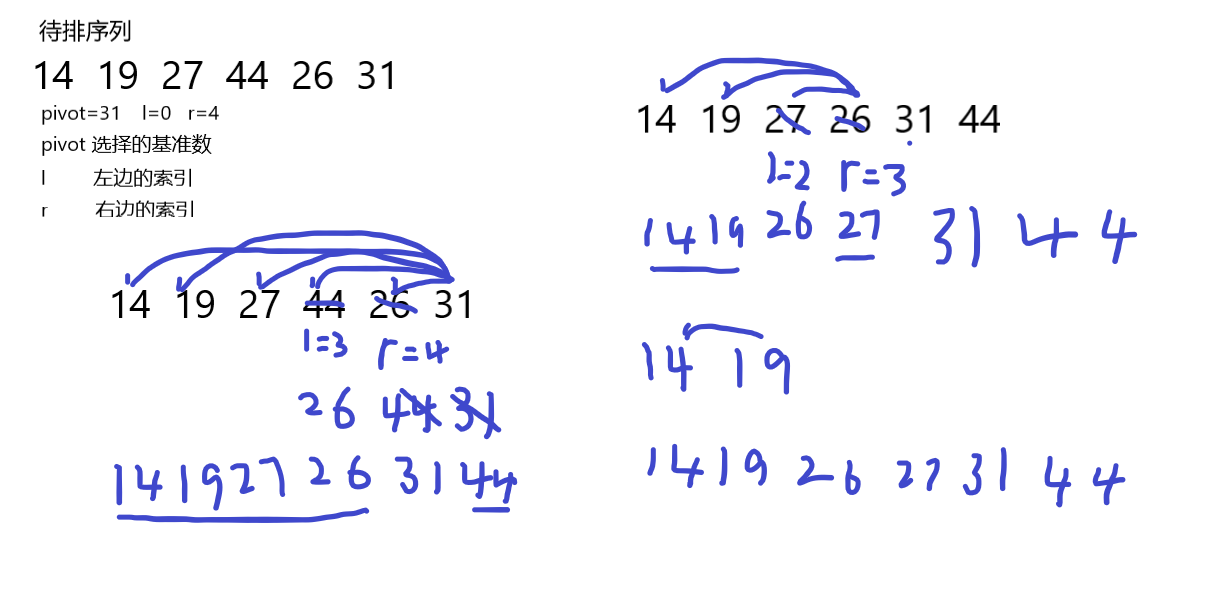 while arr[right]>pivot and left<right: # 右边的元素大于pivot