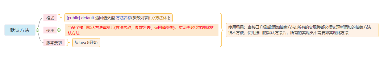 /*默认方法,为了解决:当接口类升级后(添加了抽象方法),其所有的实现类必须都实现该方法,很不方便