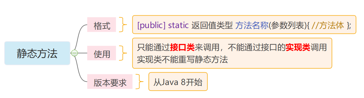 //静态方法,只能通过接口类调用,实现类不能重写该方法,版本要求 >= JDK8