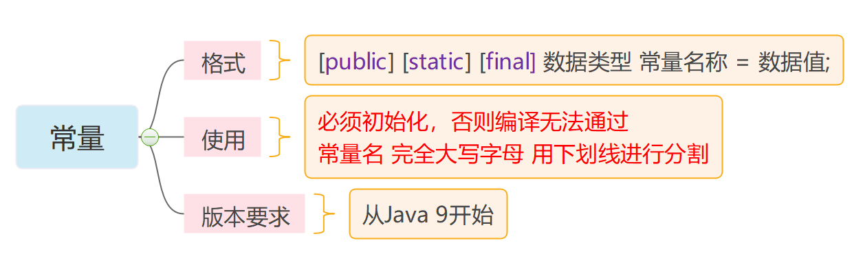 //接口中可以有成员变量,必须有[public] [static] [final]修饰,必须初始化,可省略,版本要求 >=JDK9