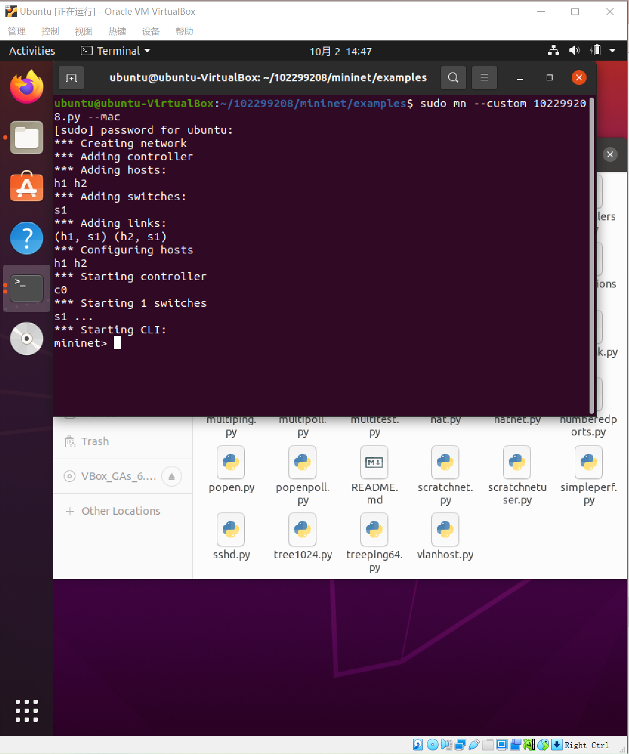 实验重点:1.拓扑要在mininet/examples目录下建立