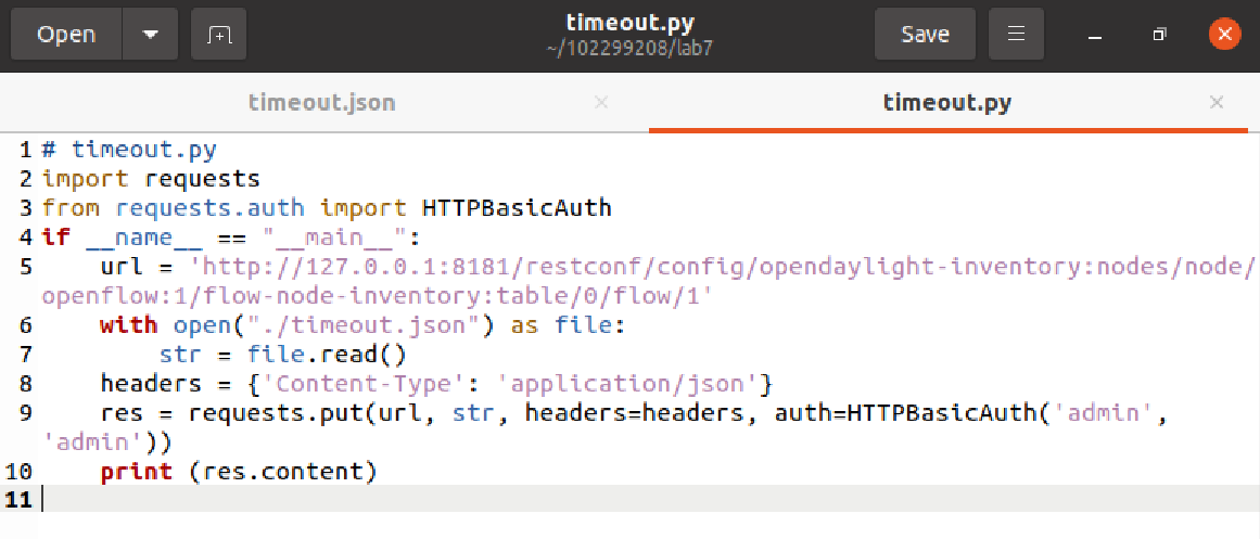 - 创建并编写 ryu_timeout.py 文件
