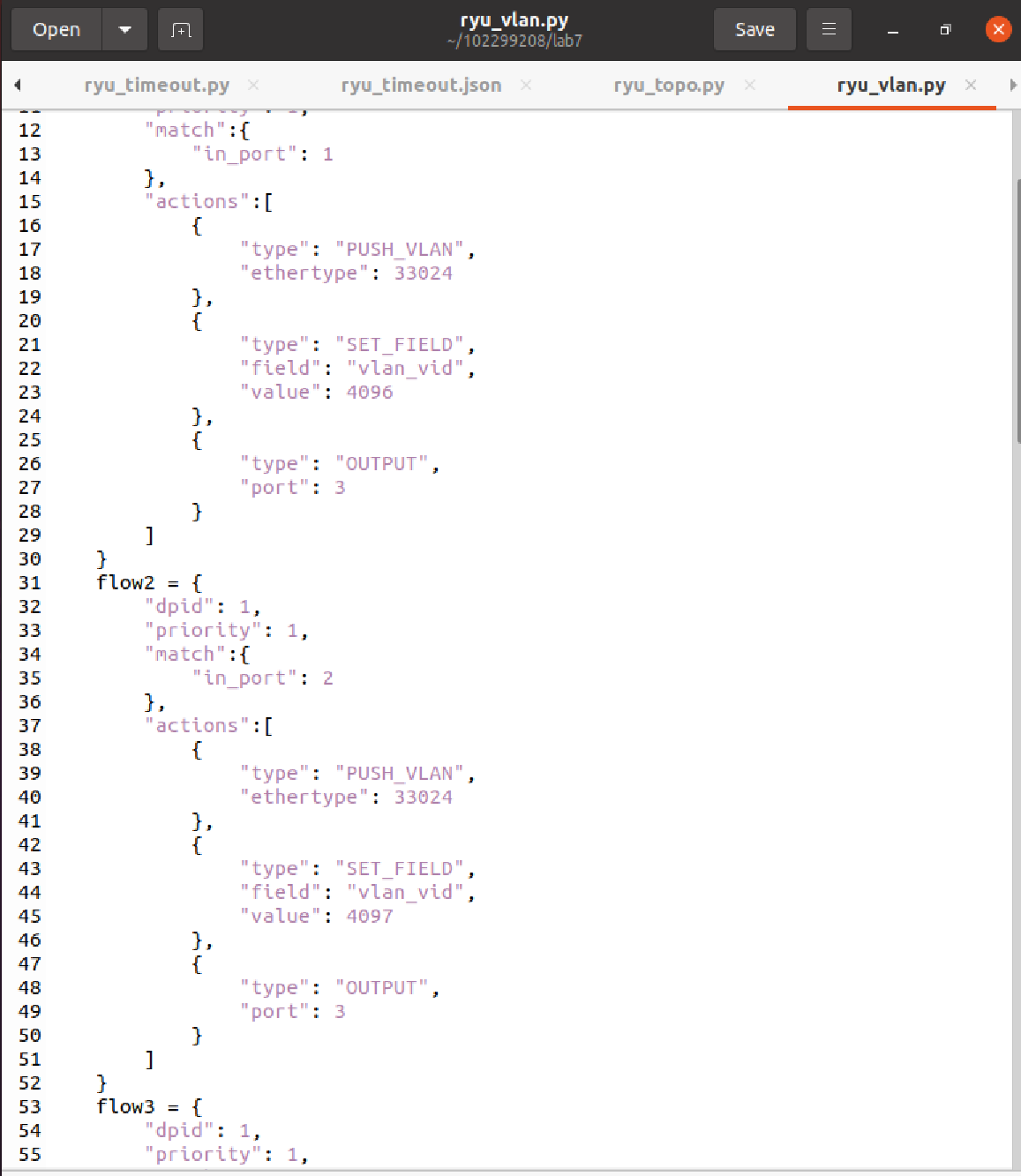 - 创建并编写 ryu_vlan.py 文件