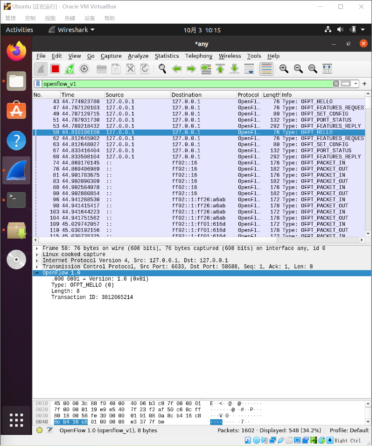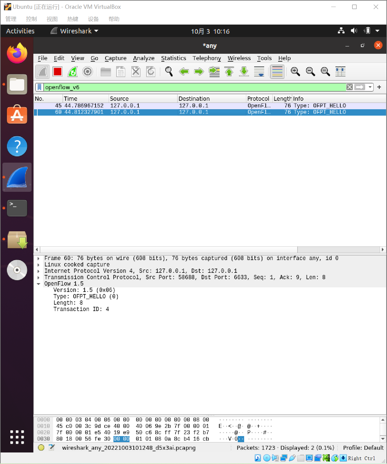 能够运用 wireshark 对 OpenFlow 协议数据交互过程进行抓包;