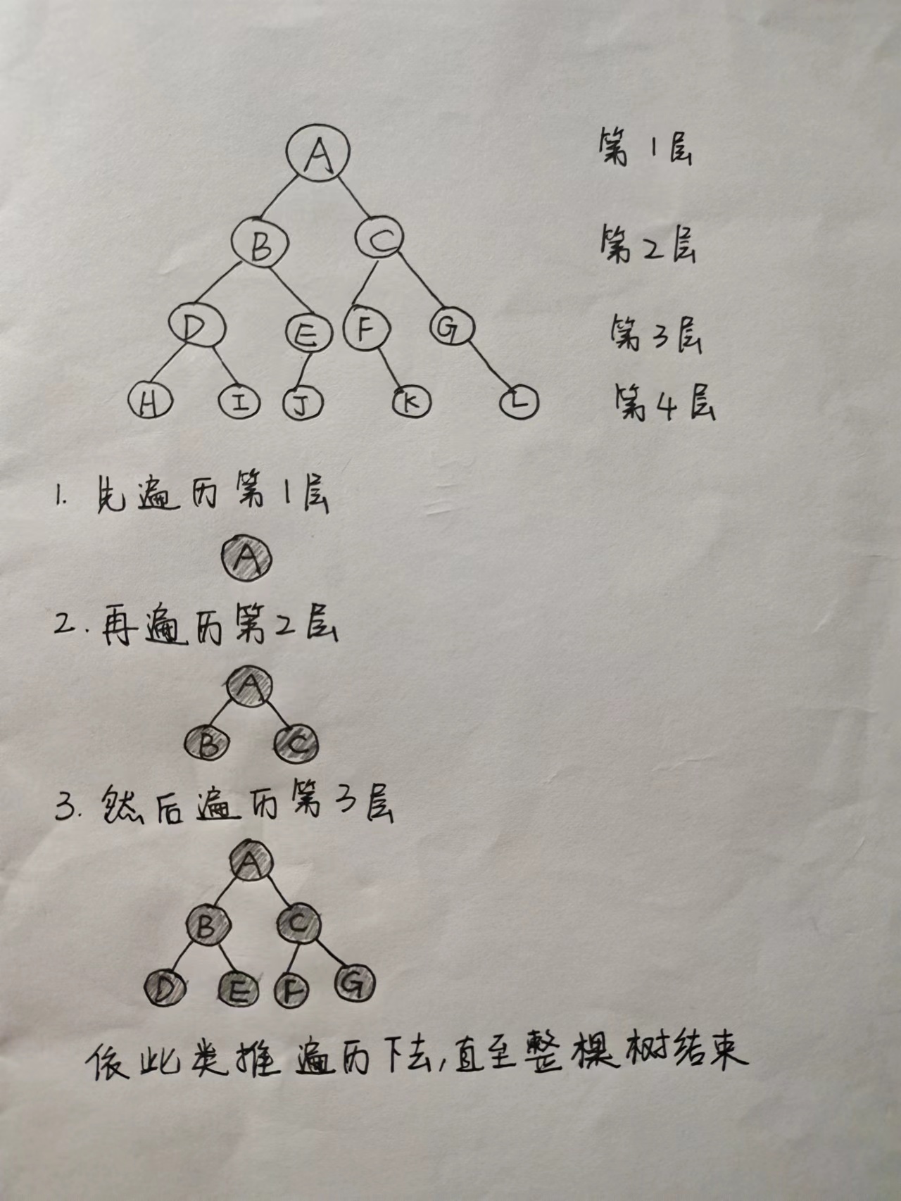 层序遍历怎么实现呢 要用到队列(先进先出):