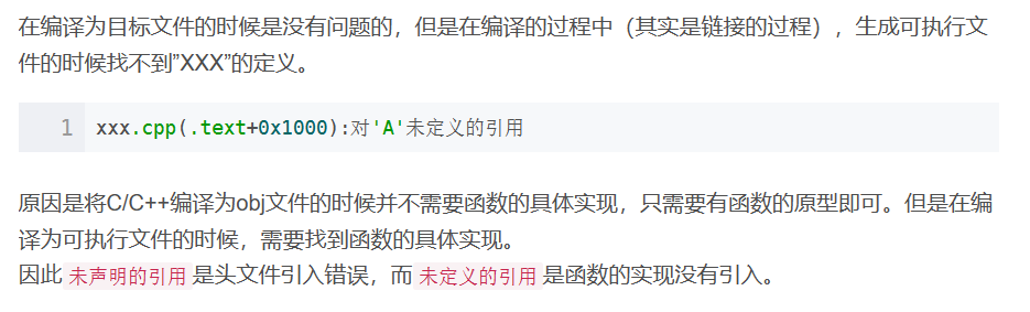 原因:在使用类模板的时候,将类的申明和定义放在两个文件中,找不到对应的函数实现 — 在看到实例化模板之前,编译器对模板的定义体是不处理的,因为编译器预先不知道 typename 实参是什么